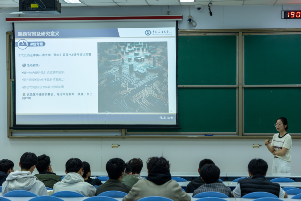 余欣洁明确大赛周期为3月29日至4月18日,设置三类梯度赛题:A类题为简易直流稳压电源设计。B类题为UPC丝印创意设计赛。C类题为EDA数字电路综合设计。据悉,大赛以“以赛促学、以赛赋能”为宗旨,为高水平赛事储备人才。